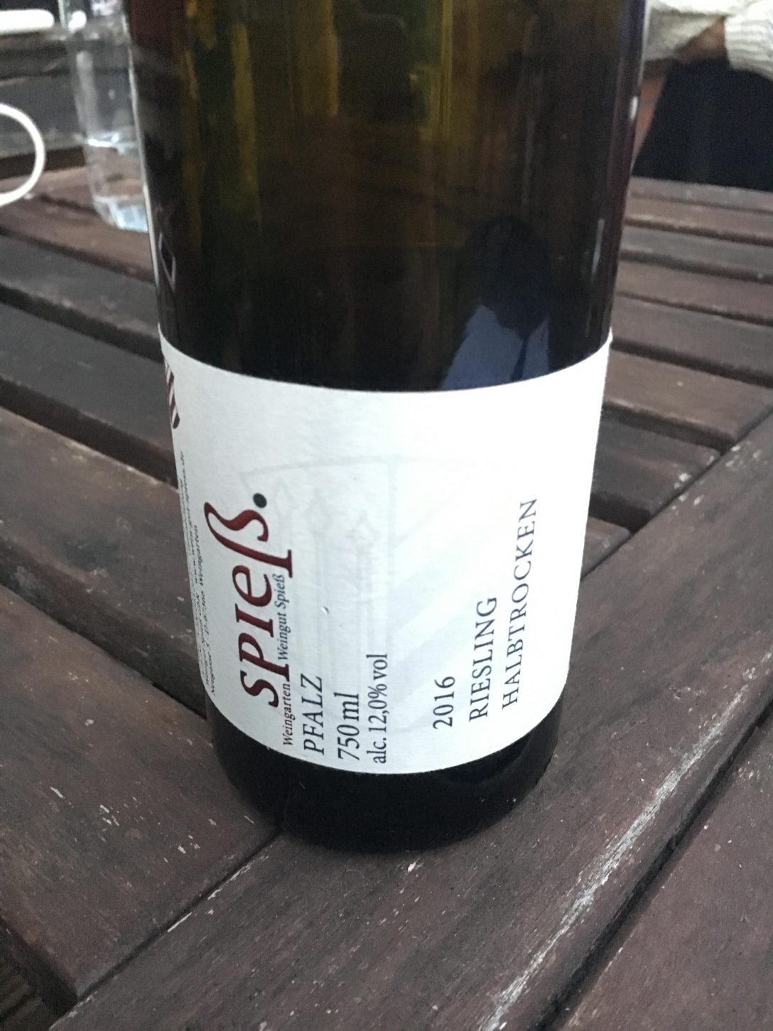 Den Anfang macht ein Riesling von 2016 aus der Pfalz, vom Weingut Spieß, und zwar ganz einfach deshalb, weil Siegfried ihn Charles zum Geburtstag geschenkt hat.